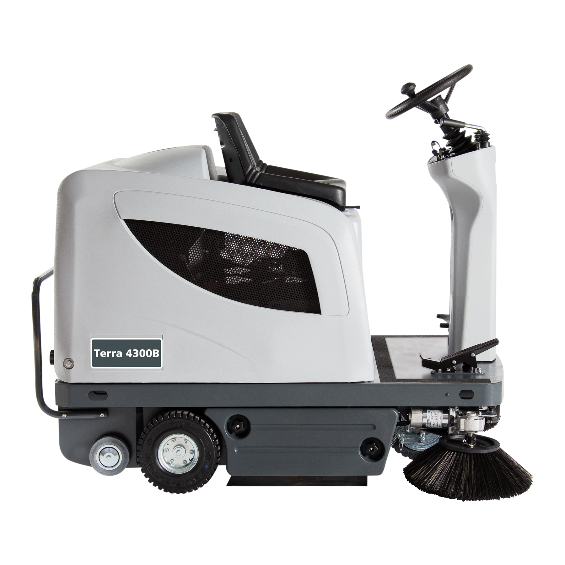 La balayeuse autoportée Terra 4300B rend le nettoyage économique et productif. Cette balayeuse est facile à utiliser et, grâce à son panneau de commandes, le temps de formation de l’opérateur est réduit.