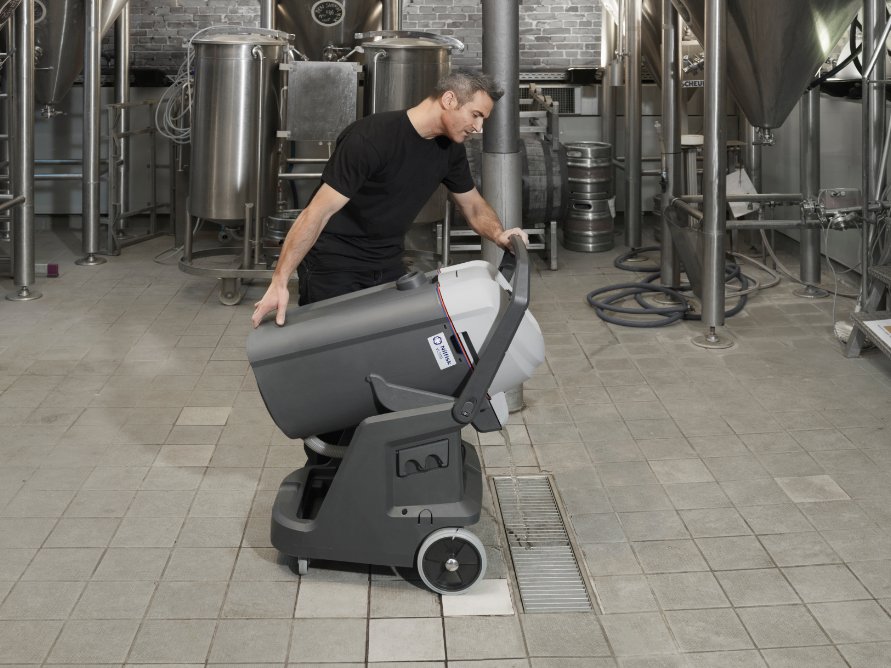 - Le basculement ergonomique permet de vider la cuve facilement et sans effort.